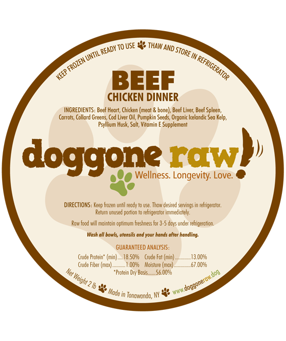 Pork Heart, Chicken (meat & bone), Pork Liver, Pork Kidney, Carrots, Collard Greens, Cod Liver Oil, Pumpkin Seeds, Organic Icelandic Sea Kelp, Psyllium Husk, Salt, Vitamin E Supplement.
