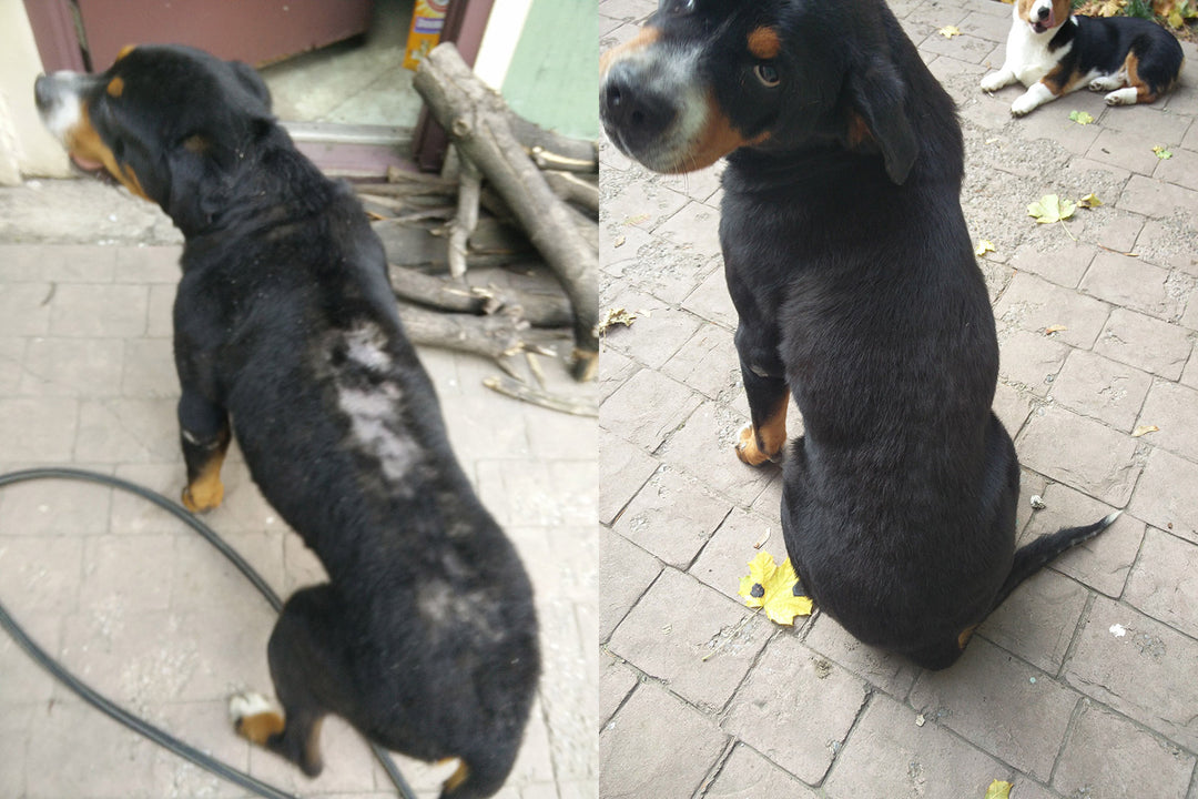 I’ve had my Jacob for 7 years. Jacob is a Swissy that never seemed to gain weight so we just assumed it was in his genes to be a smaller guy. I had always made it a point to buy the best of foods available, jumping around from kibble to kibble but for some reason he wasn’t gaining weight and always seemed to have loose, inconsistent stool. We finally settled on a grain free kibble that seemed to work with solidifying his stool until after a year and a half of using it. I also noticed that his skin went from dry, to flaky, to scabby in the matter of a few months. Vets recommended topical solutions like hot spot medication, medicated shampoos and sprays which all seemed to take care of the sores but never actually fixed the problem. It was to the point where he was losing all of the fur off of his back and chest due to the dryness.